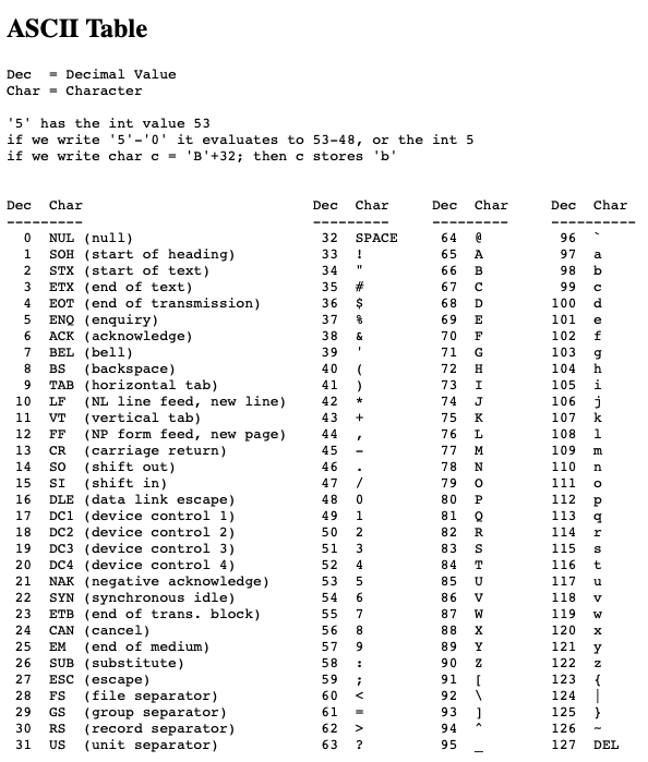 출처 : ASCII Table